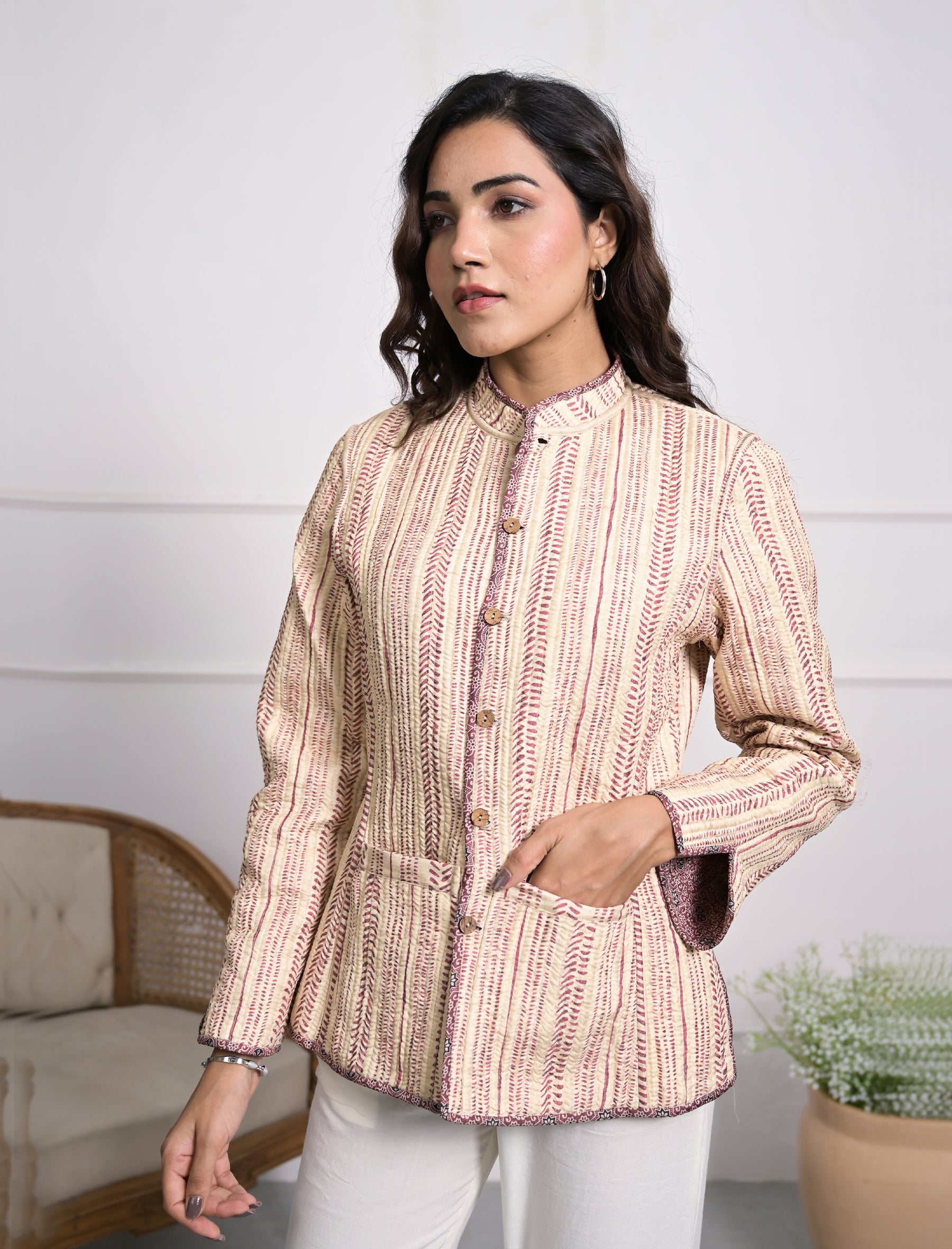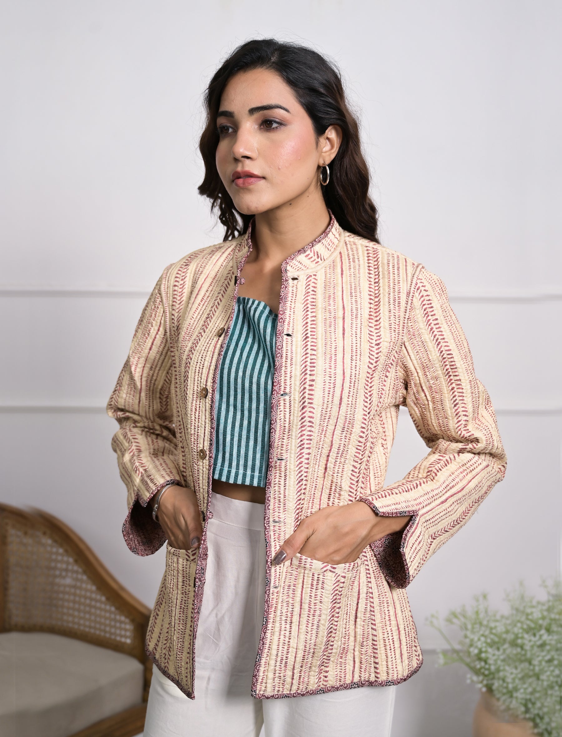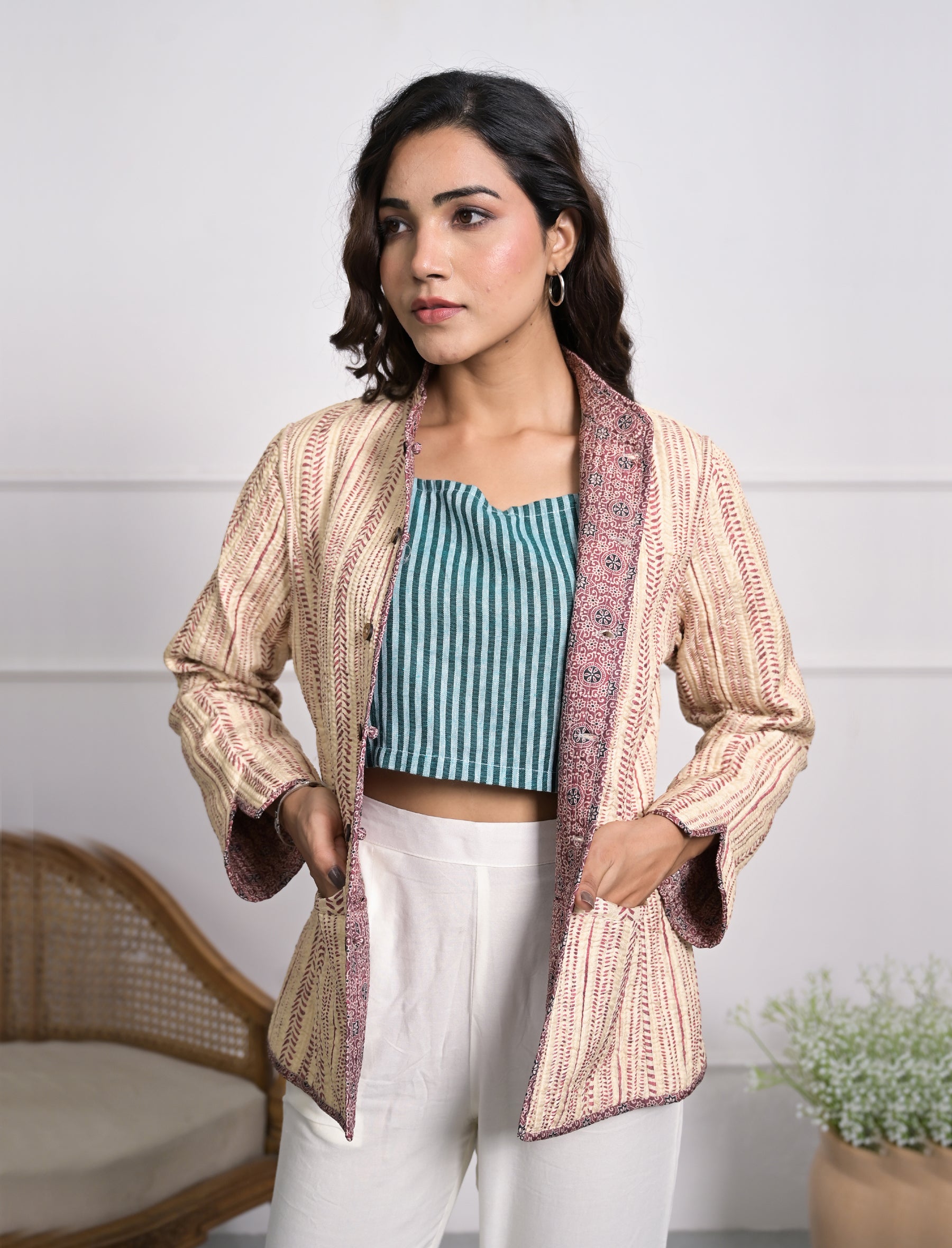 Silk Block Printed Reversible Winter Jacket
