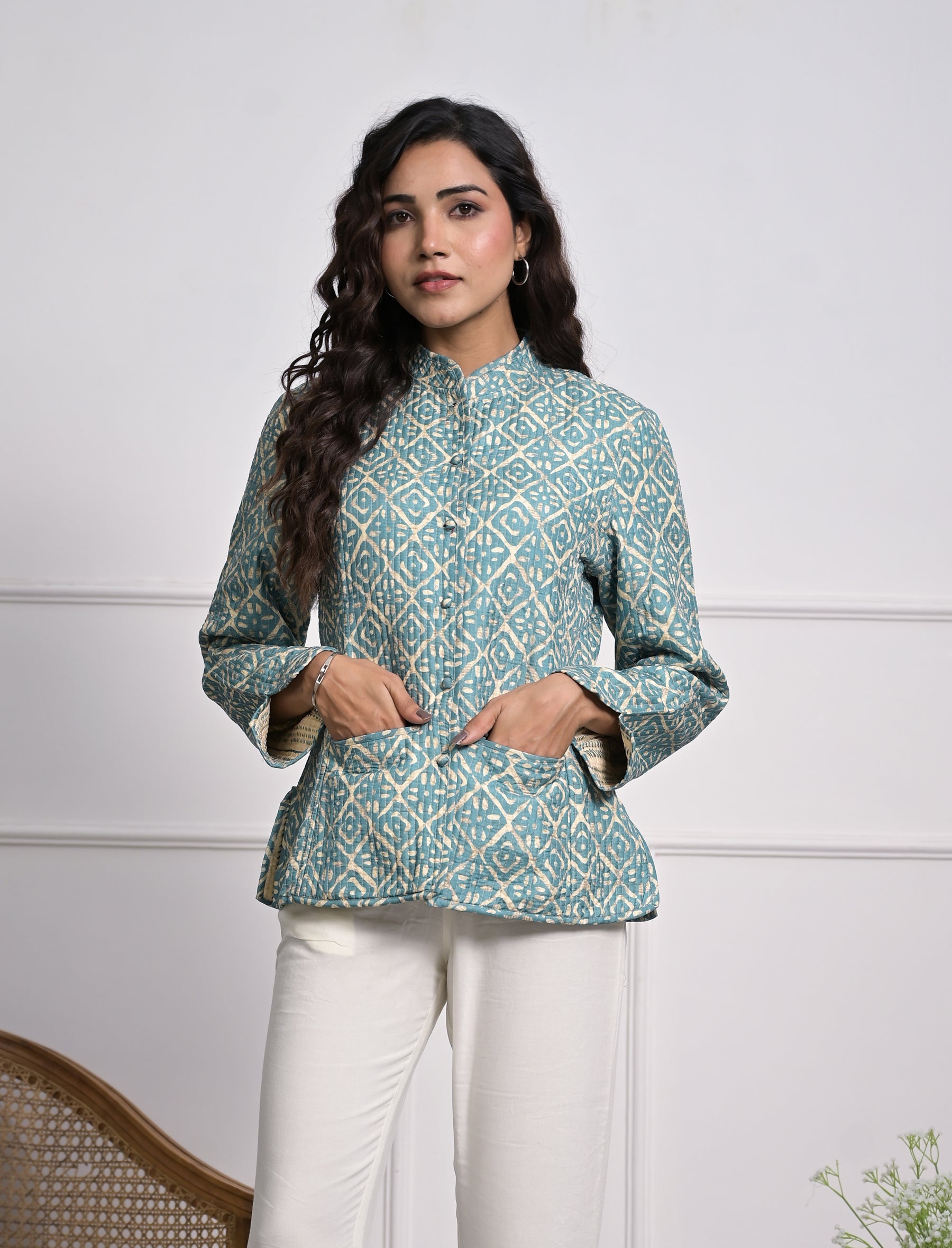 This printed jacket is presented to you by Gulabchand Prints, A well-known brand in hand block prints from over 9 decades. This exclusively hand stitched jacket is made of 100% pure silk fabric with having printed prints over it. The jacket is best suitable for you to showcase your women hood. Wear this at your ease and the fabric is so smooth to skin that you will love it and the attractive prints adds more charm to the same.