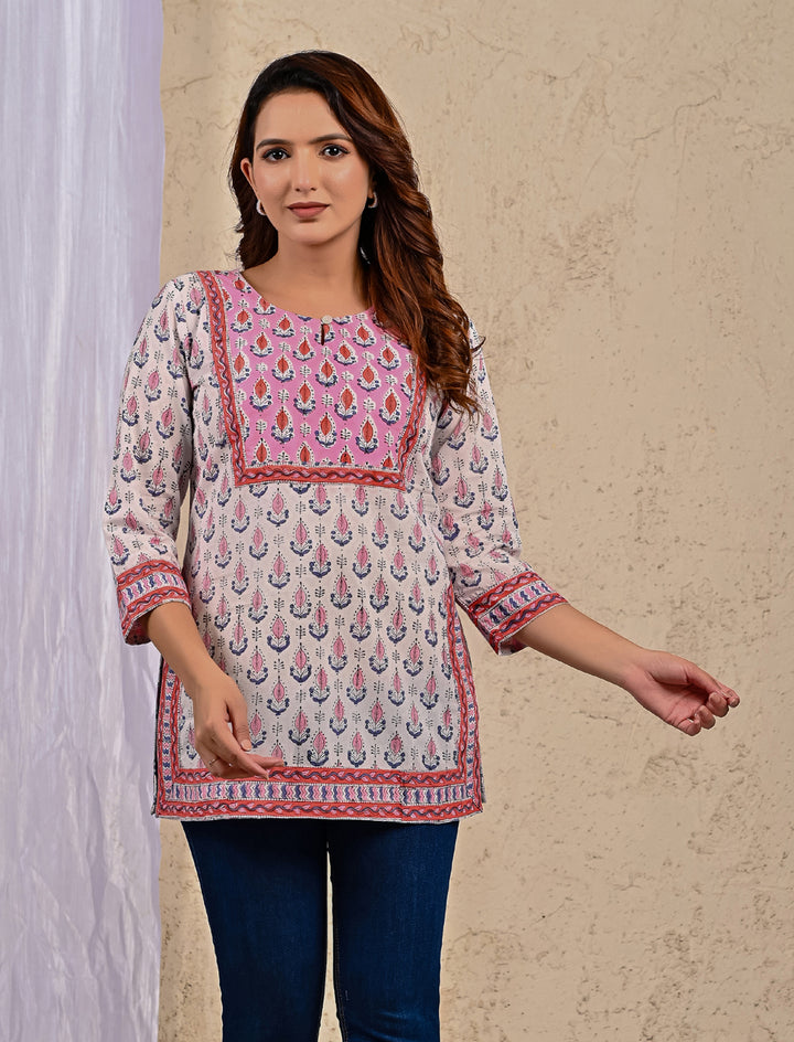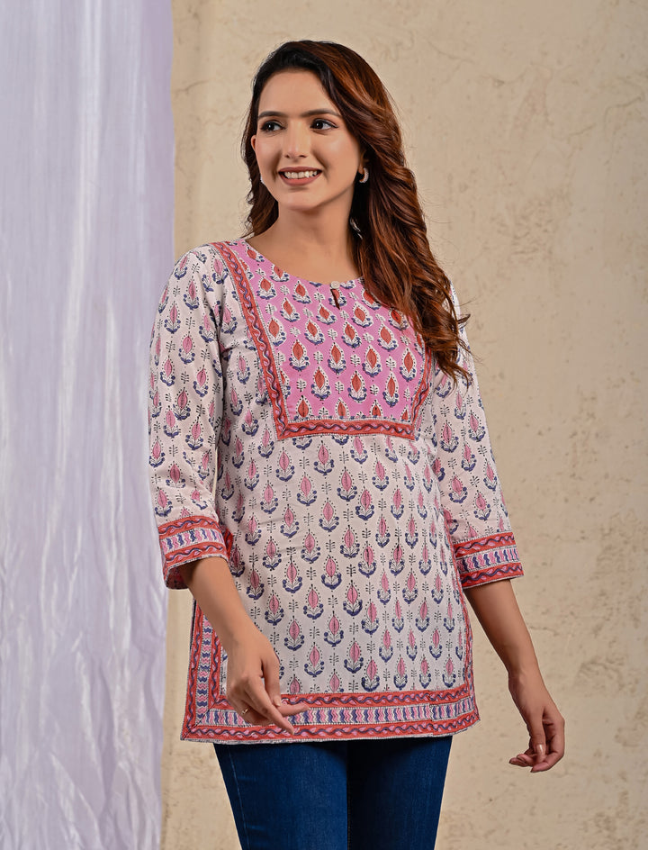 Hand Block Printed Cotton Top By Gulabchand Prints