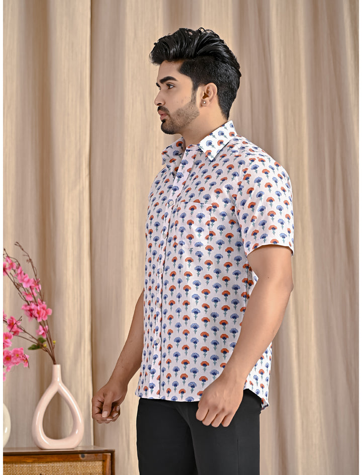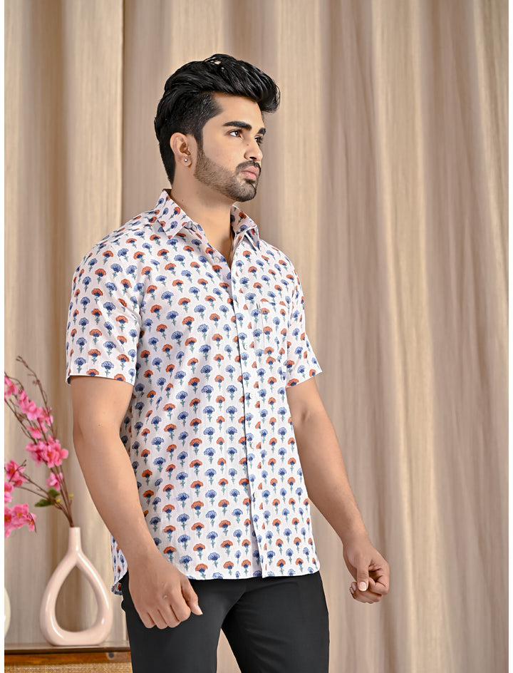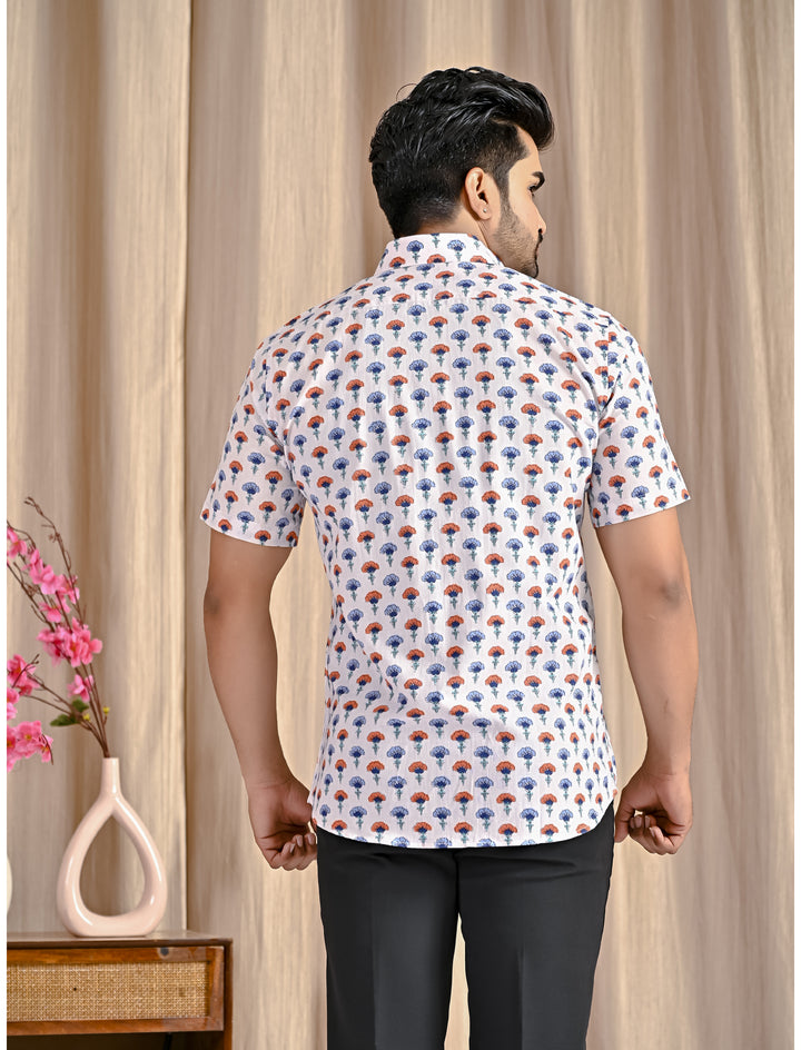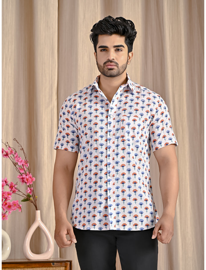 White Cotton Printed Half Sleeves Shirt