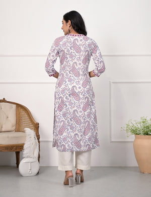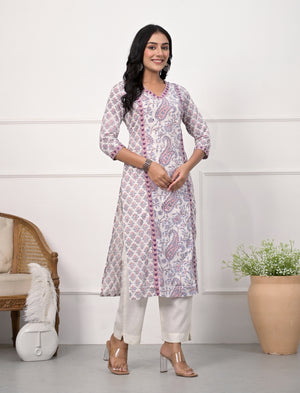 This printed ethnic wear kurti is presented to you by Gulabchand Prints, A well-known brand in hand block prints from over 9 decades. This exclusively hand stitched kurti is made of 100% pure cotton fabric with having printed prints over it. The kurti is best suitable for you to showcase your women hood. Wear this at your ease and the fabric is so smooth to skin that you will love it and the attractive prints adds more charm to the same.