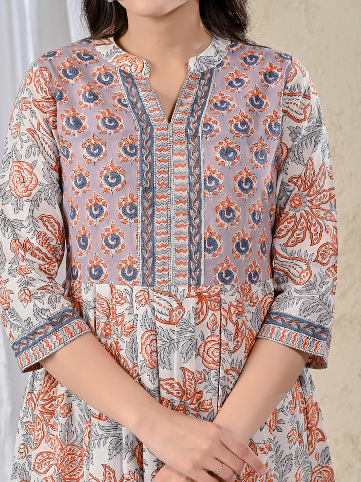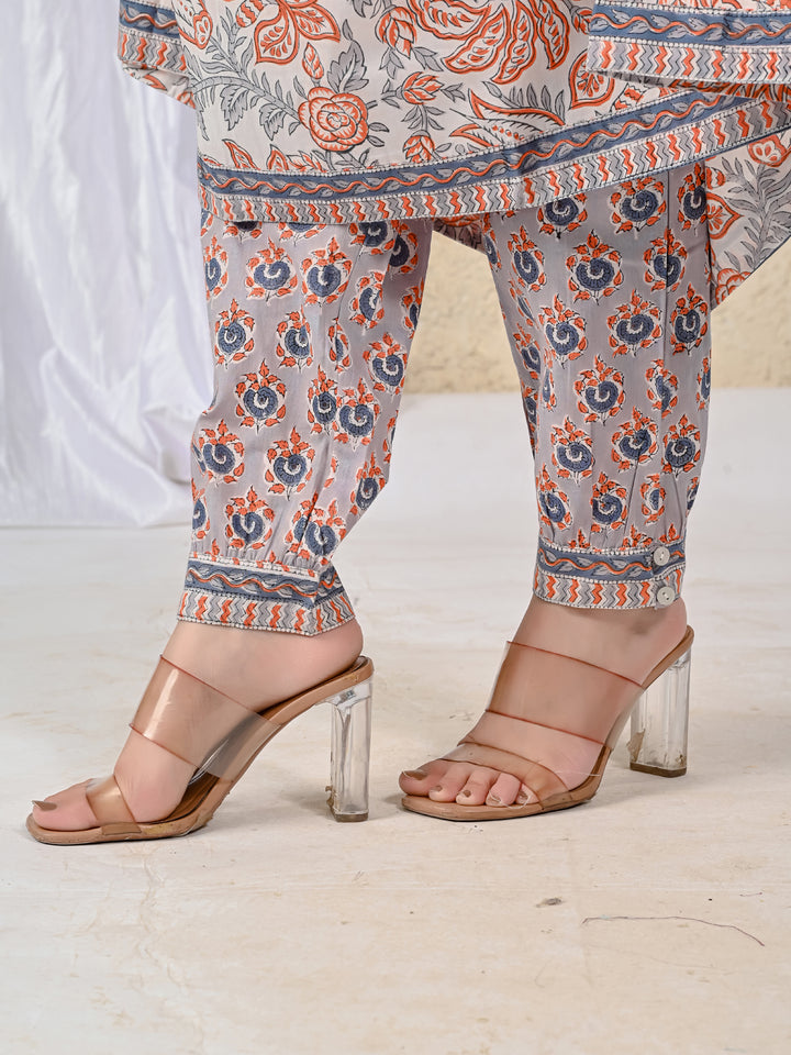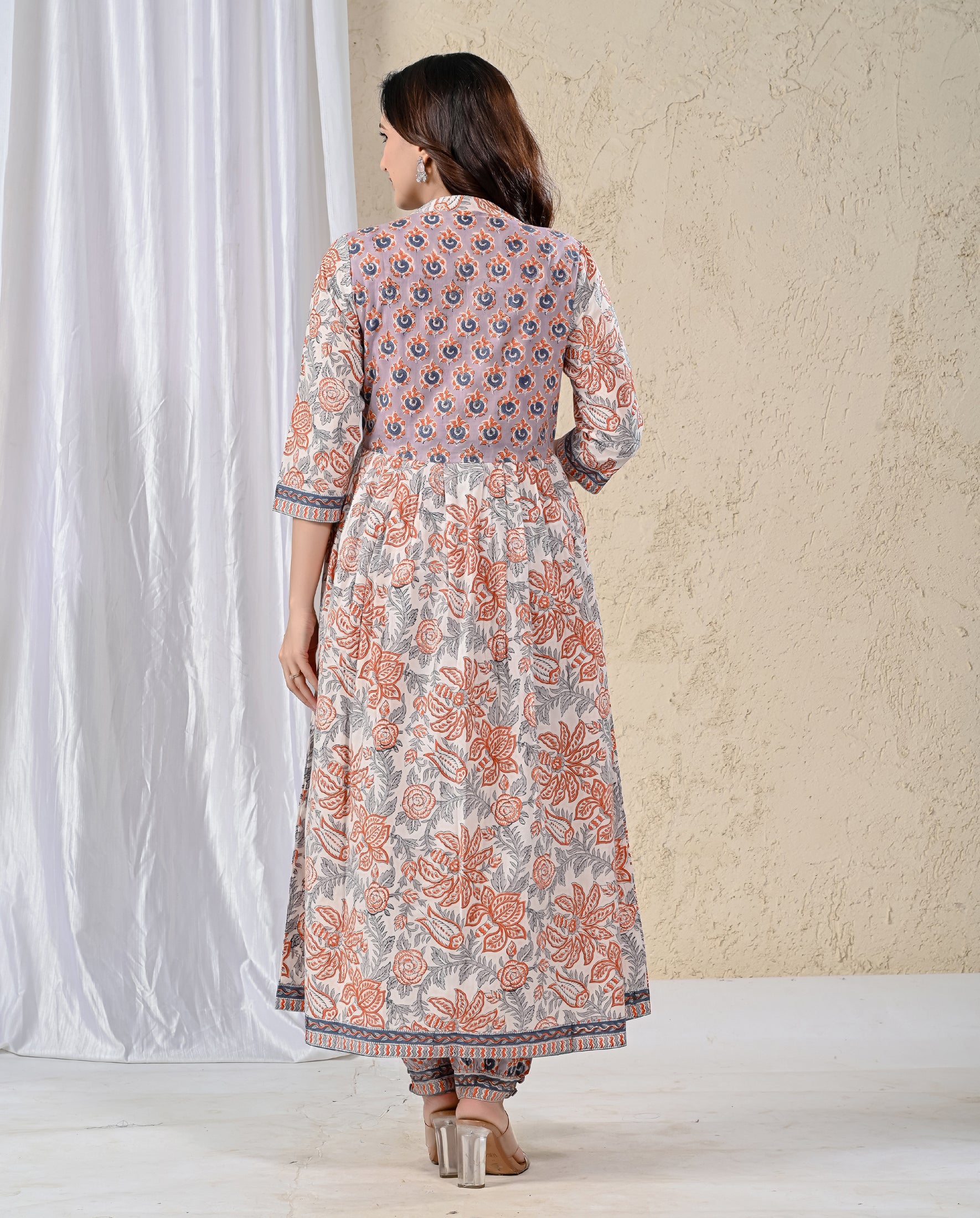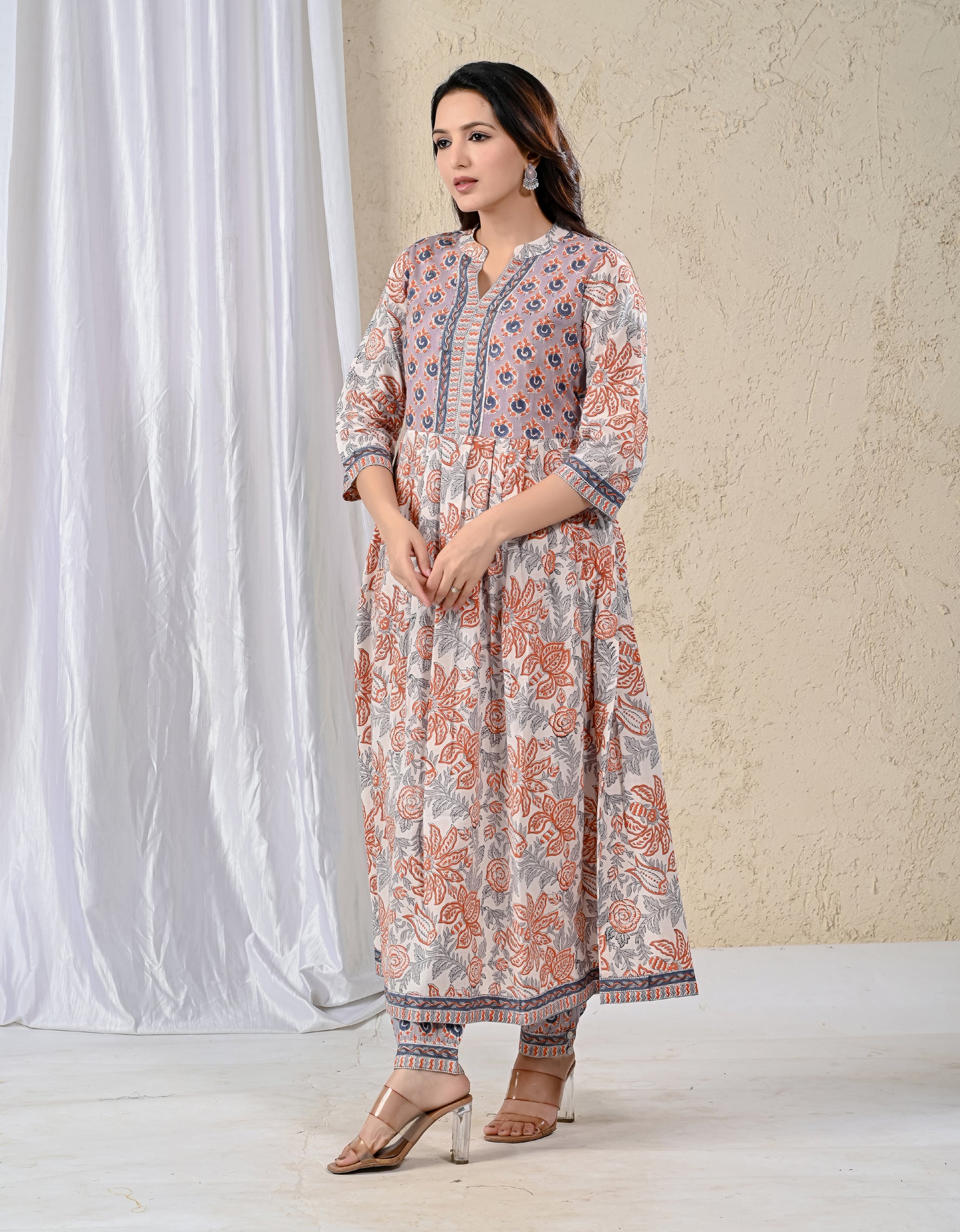 This printed ethnic wear kurta set is presented to you by Gulabchand Prints, A well-known brand in hand block prints from over 9 decades. This exclusively hand stitched kurta set is made of 100% pure cotton fabric with having printed prints over it. The kurta set is best suitable for you to showcase your women hood. Wear this at your ease and the fabric is so smooth to skin that you will love it and the attractive prints adds more charm to the same.