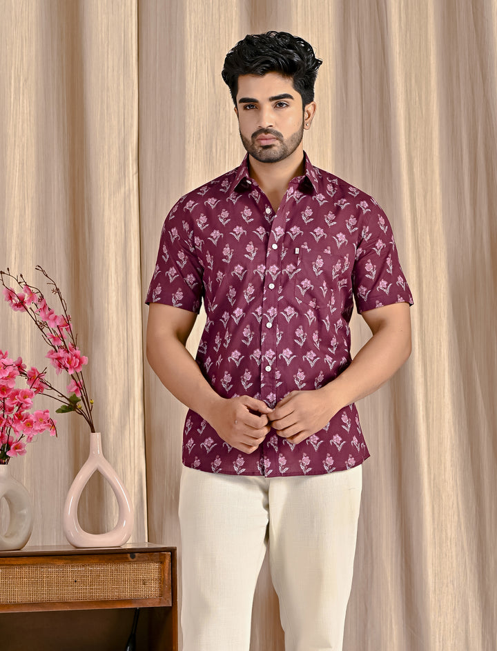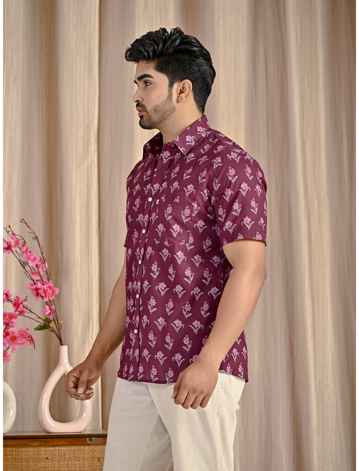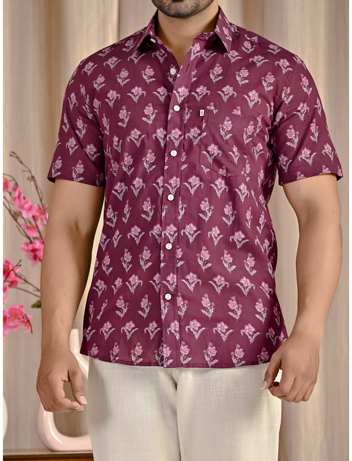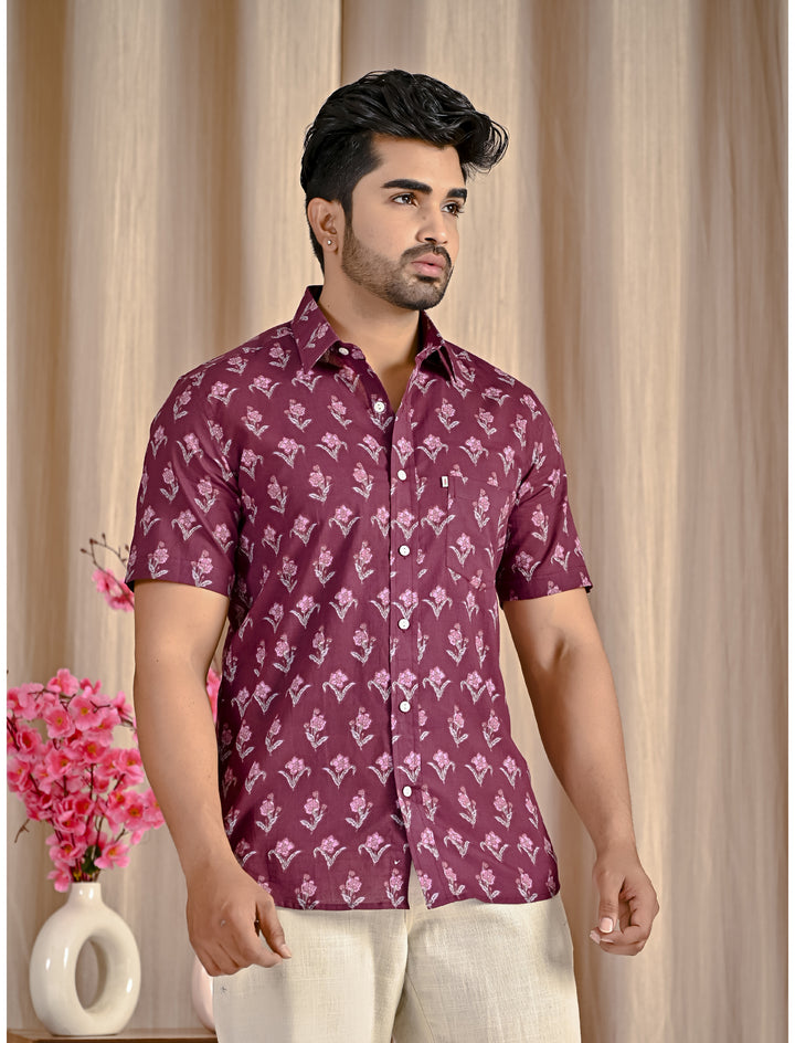 This hand block printed cotton shirt is presented to you by Gulabchand Prints, A well-known brand in hand block prints from over 9 decades. This exclusively hand stitched shirt is made of 100% pure cotton fabric with having hand block printed prints over it. Wear this at your ease and the fabric is so smooth to skin that you will love it and the attractive prints adds more charm to the same.