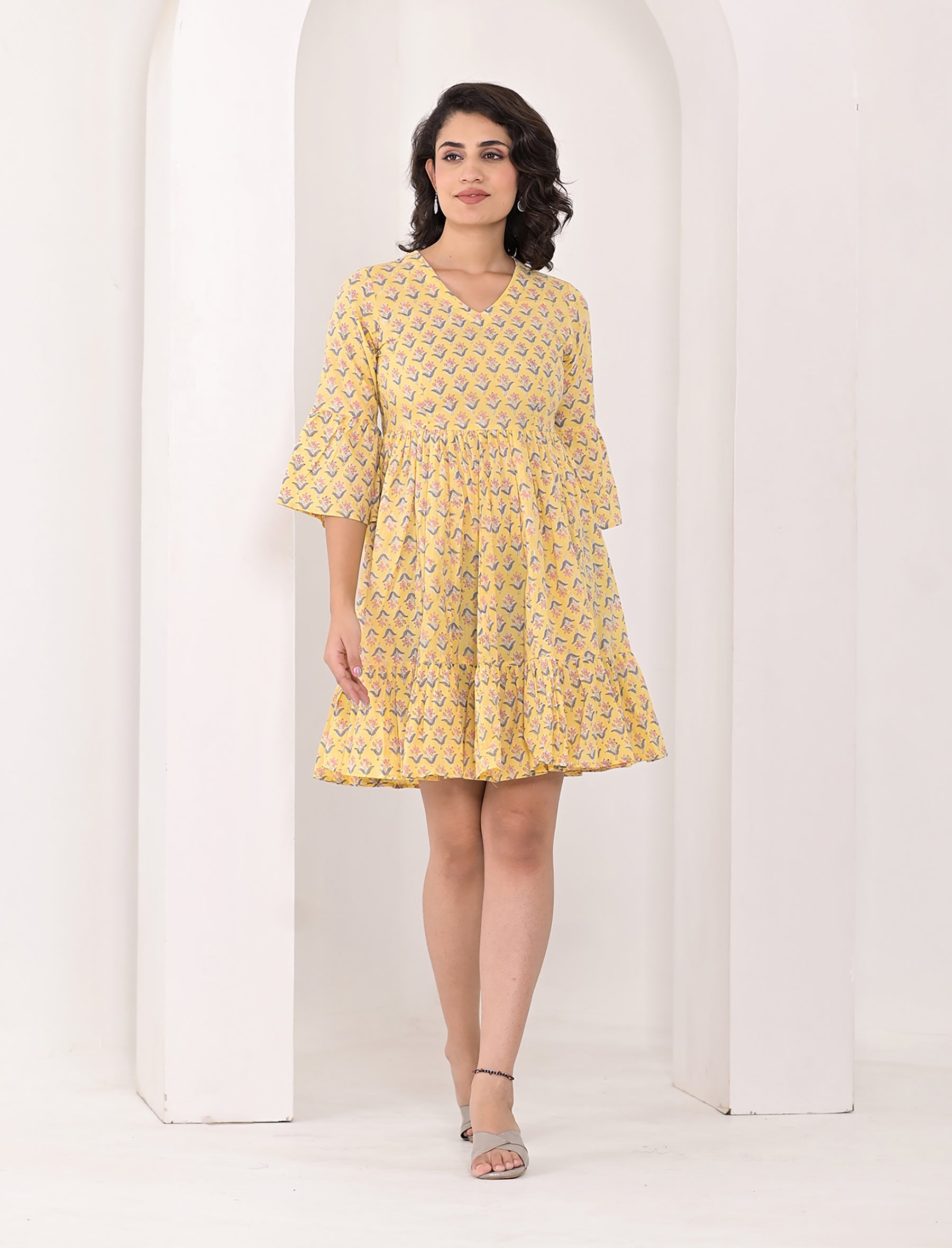 This printed ethnic wear dress is presented to you by Gulabchand Prints, A well-known brand in hand block prints from over 9 decades. This exclusively hand stitched dress is made of 100% pure cotton fabric with having printed prints over it. The dress is best suitable for you to showcase your women hood. Wear this at your ease and the fabric is so smooth to skin that you will love it and the attractive prints adds more charm to the same.