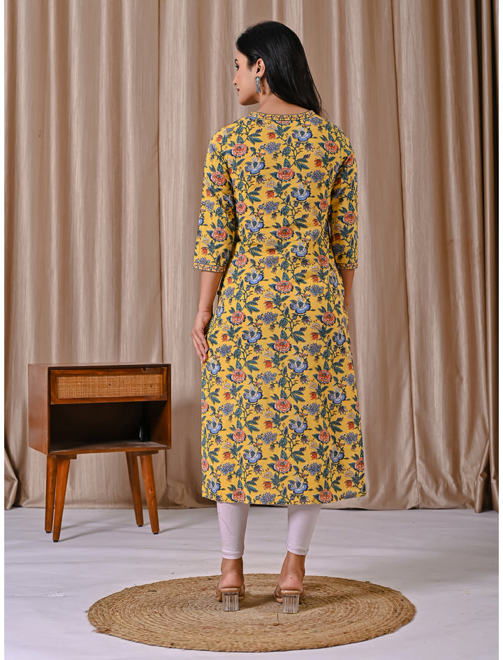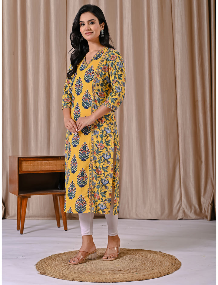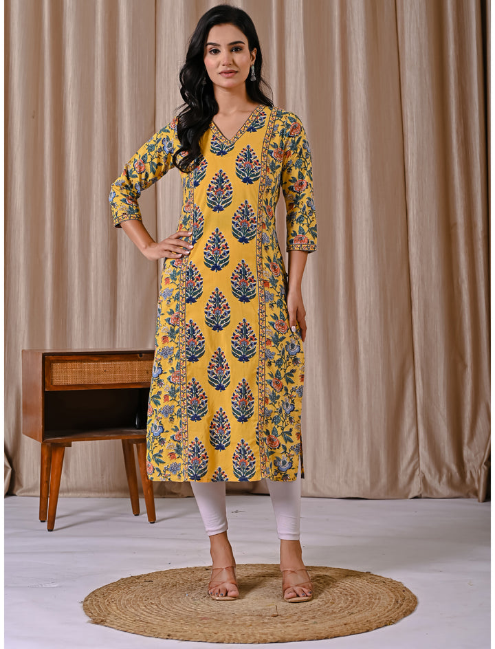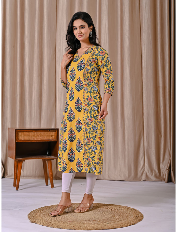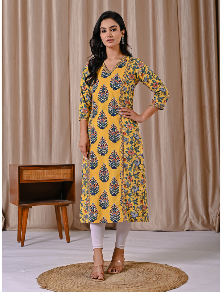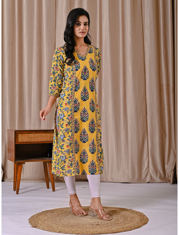 This printed ethnic wear kurti is presented to you by Gulabchand Prints, A well-known brand in hand block prints from over 9 decades. This exclusively hand stitched kurti is made of 100% pure cotton fabric with having printed prints over it. The kurti is best suitable for you to showcase your women hood. Wear this at your ease and the fabric is so smooth to skin that you will love it and the attractive prints adds more charm to the same.