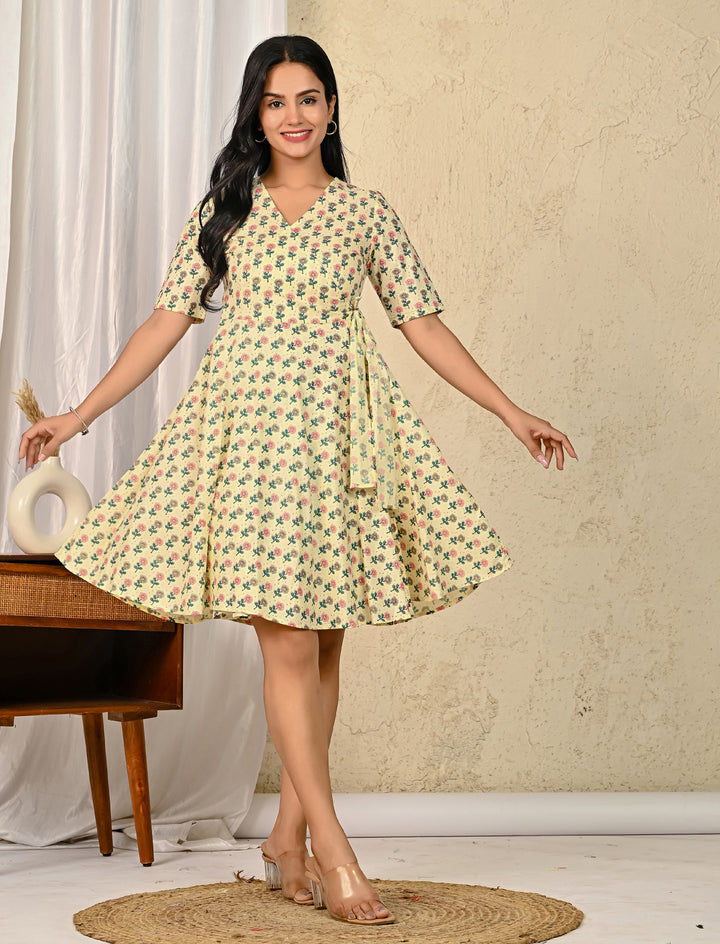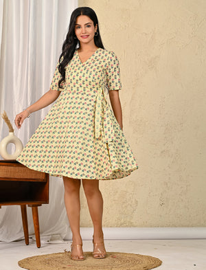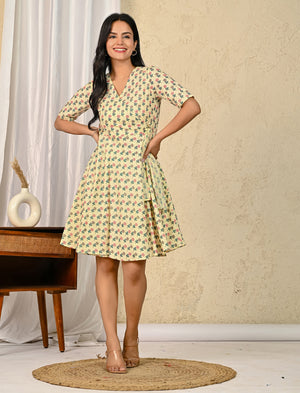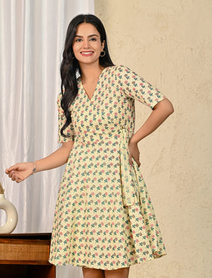 Pastel Butta Cotton Printed Wrap Dress