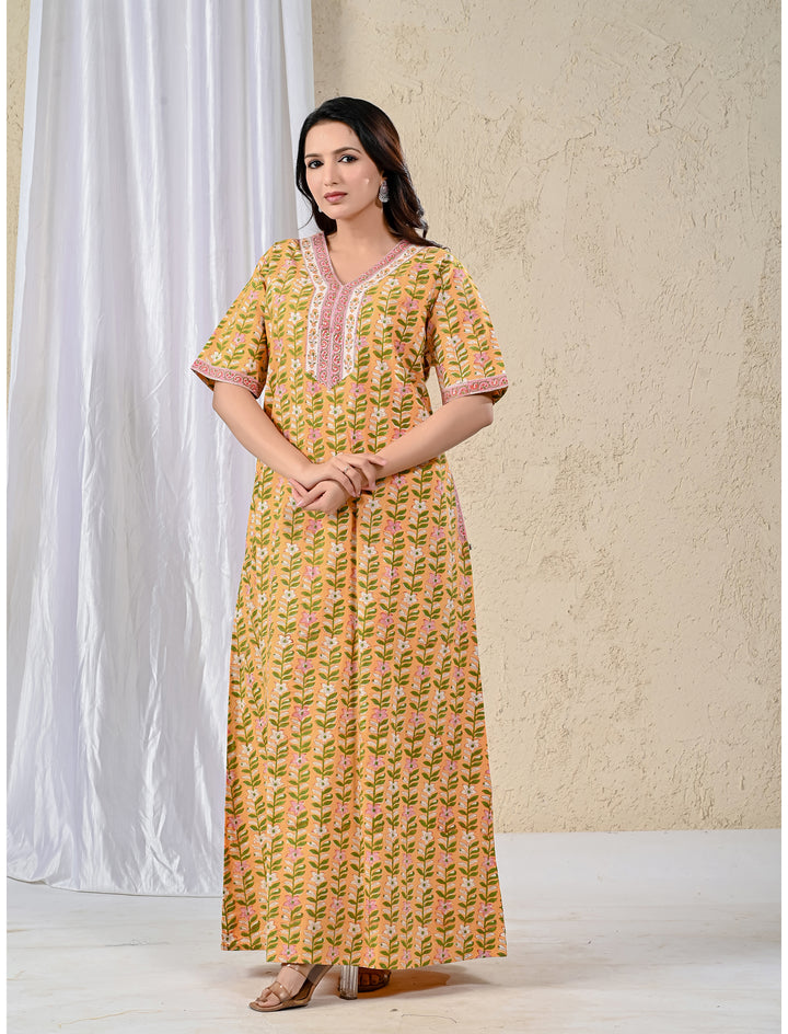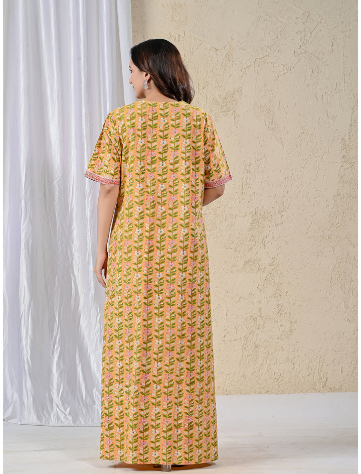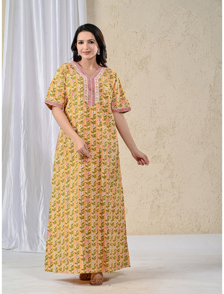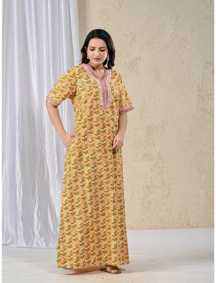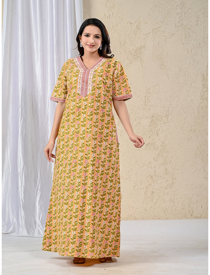 Yellow Jaal Cotton Comfortable Night Gown