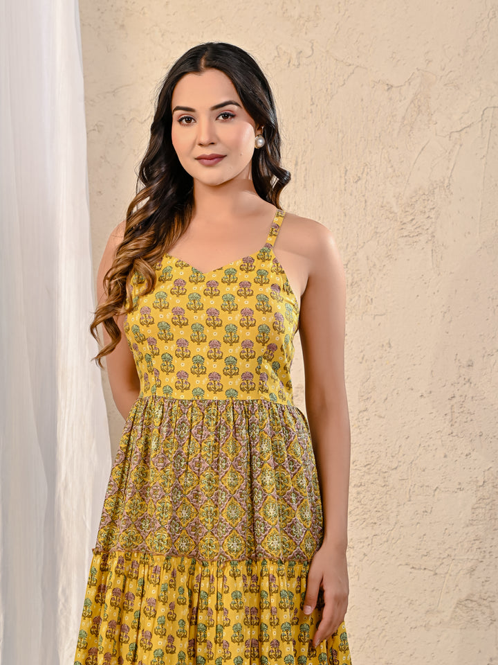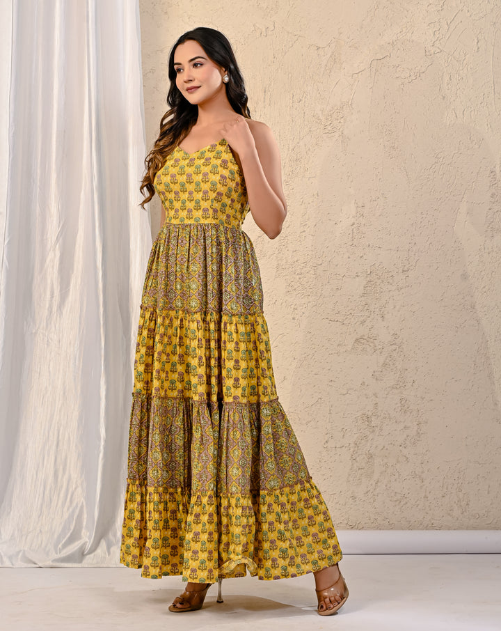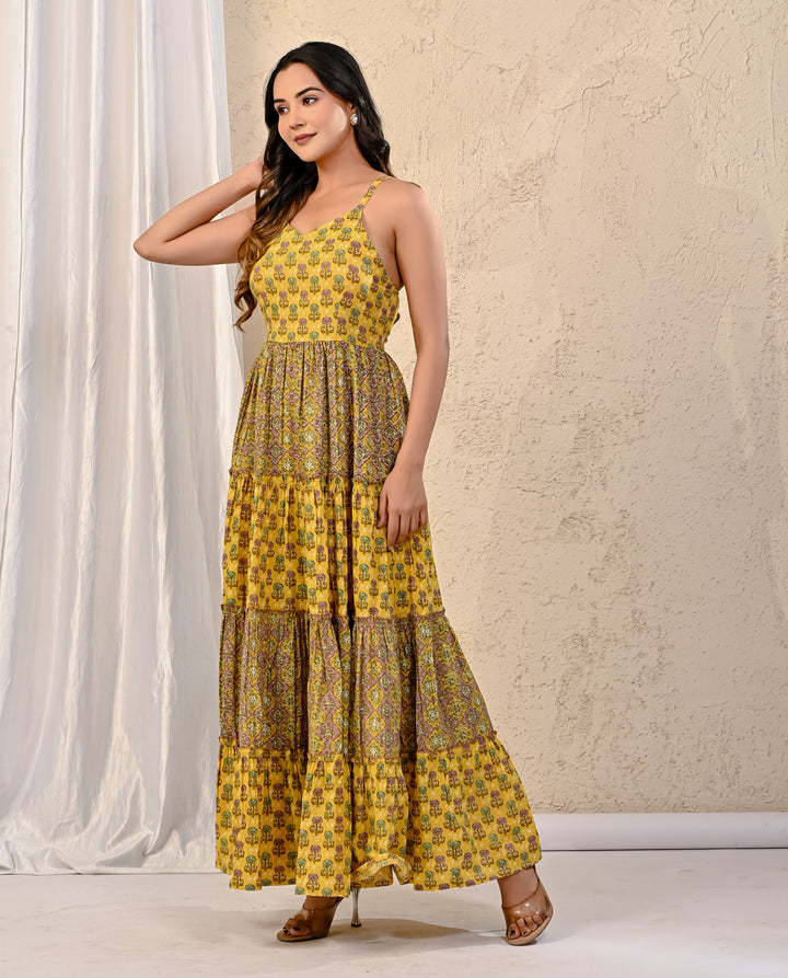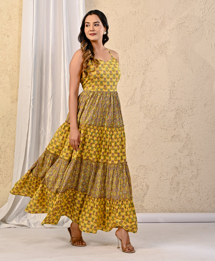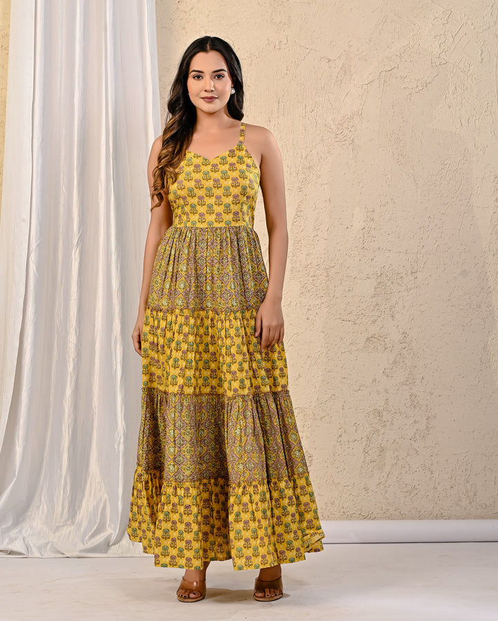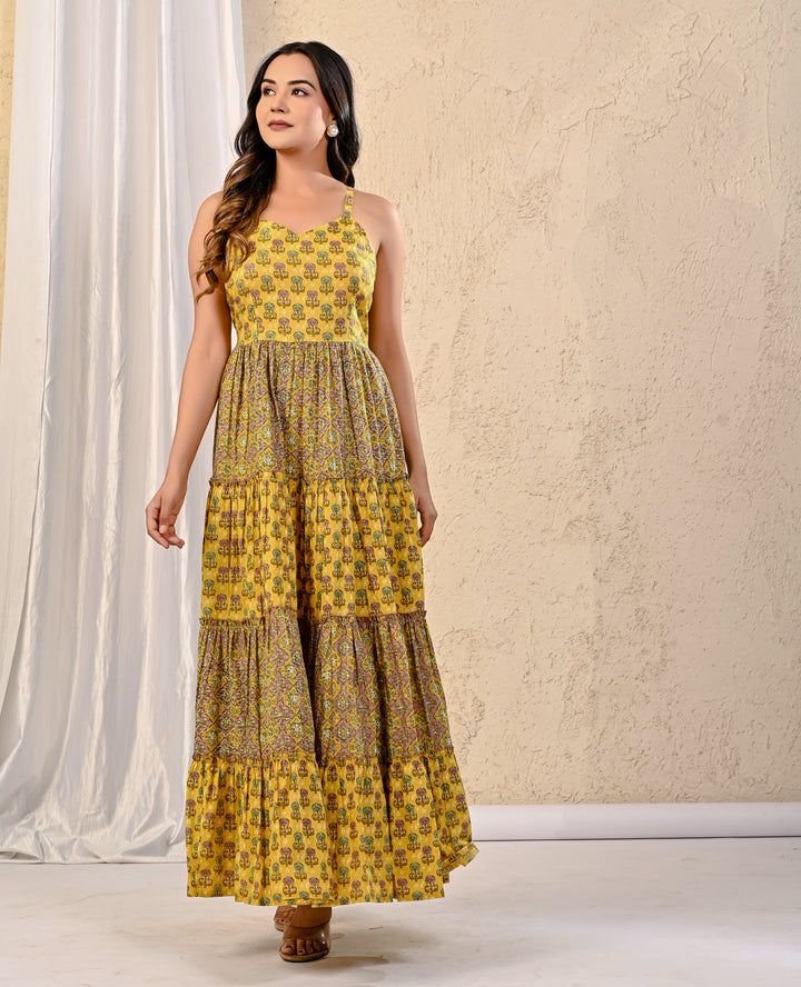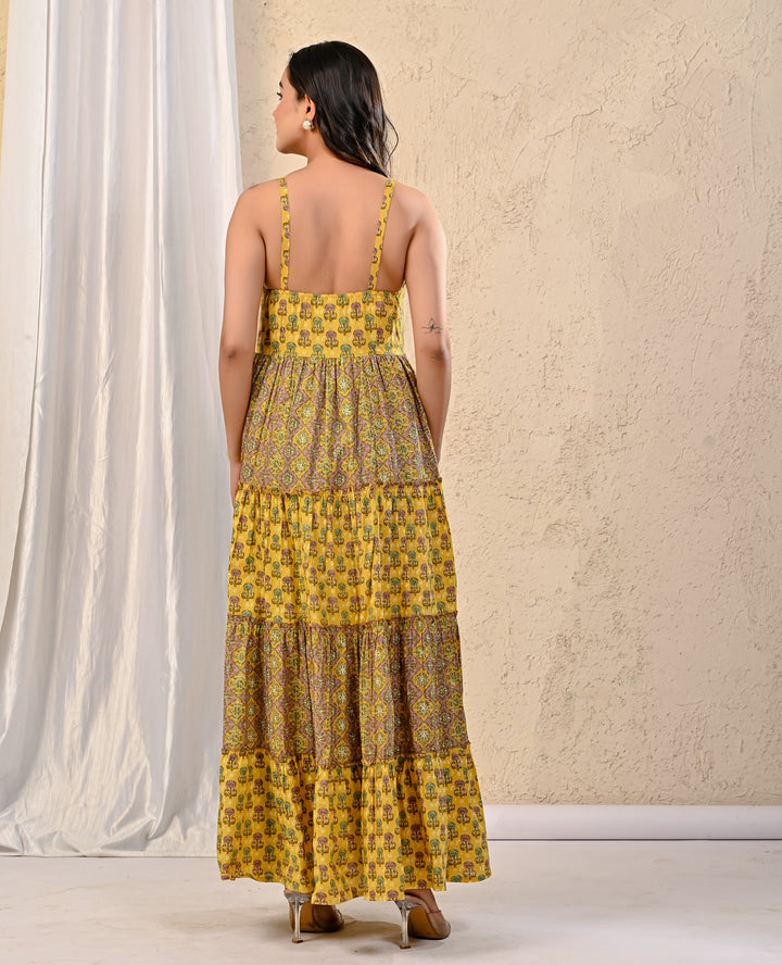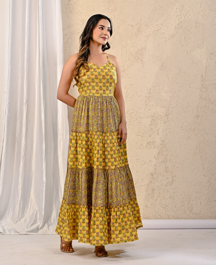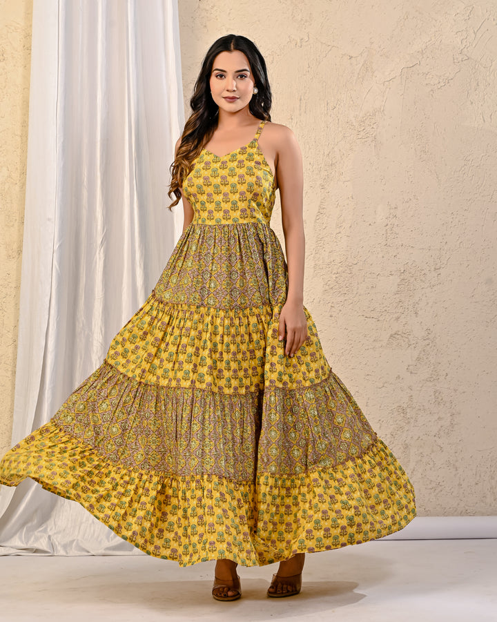 Expertly crafted with traditional Red Bandhej and intricate Kantha work, this cotton long dress exudes elegance. The stunning design on the yoke adds a touch of sophistication, making it perfect for any occasion. With its comfortable fit and beautiful detailing, this dress is a must-have for your wardrobe.
